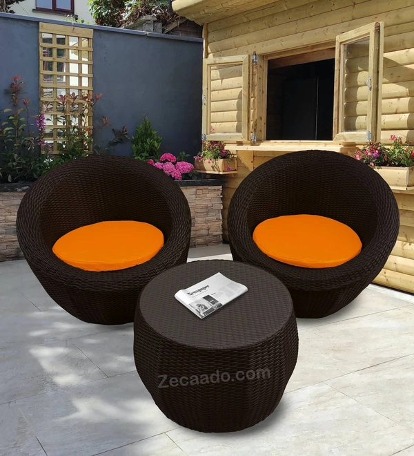 Fortune 2 Seater Outdoor Patio Set in Brown Corduroy Finish with Orange Cushion