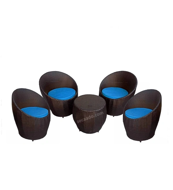 Ovate 4 Seater Patio Coffee Table with Blue Cushions in Brown Corduroy Finish