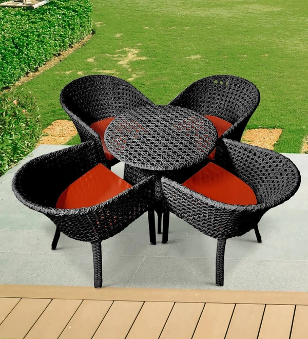 Pavillion 4 Seater Cofee chair Set in Black Corduroy Finish with Red Cushions